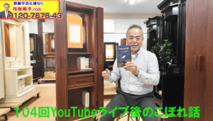 今日のYouTube動画「104回後のこぼれ話」では、ライブでは語り尽くせなかった秘話とともに、私の情熱の結晶である「仏壇革命 虚空厨子」に込めた**「宇宙との生命連動」という深い哲学、そして「諦めない人間革命」**への揺るぎない想いを語ります。